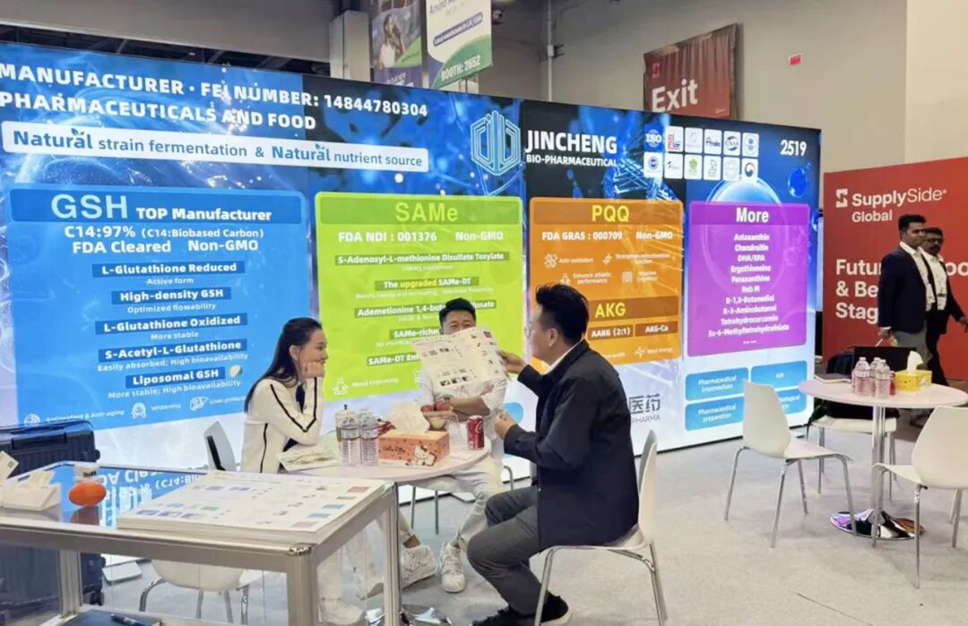 10月28—30日,备受瞩目的世界制药原料展览会(CPhI Frankfurt 2025),美国国际天然、健康和创新原料展览会(Supply Side Global)分别在德国法兰克福和美国拉斯维加斯举行。金城医药销售、研发、BD、供应链团队深度参与国际“双展”会,与国际客户、行业伙伴广泛交流,共同探讨医药产业创新发展路径。