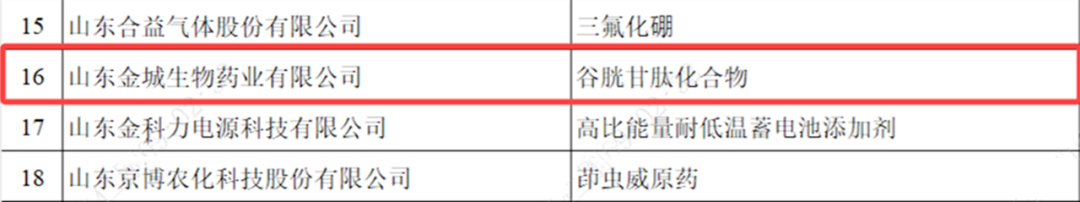制造业单项冠军企业指长期专注于制造业特定细分领域,生产技术或工艺达到国际领先水平,且单项产品市场占有率位居全球前列的企业。此次金城生物谷胱甘肽化合物产品凭借在医药大健康领域深耕十多年的丰厚技术积累和服务全球客户的突出贡献脱颖入选,充分证明了其在该产品领域卓越的技术创新能力、全球化的市场占有率以及优质的品质控制水平。